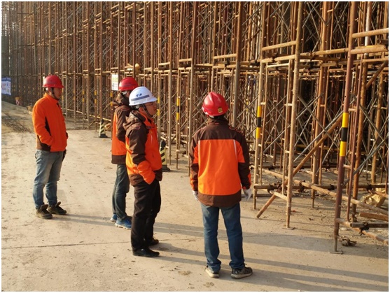 检查过程中,各部门人员针对支架搭设方案及规范标准,对现浇支架进行了认真细致的隐患排查,对排查到的问题一一进行记录,并严格要求相关施工队伍及时落实整改。项目经理耿仕标强调,现浇箱梁施工主要安全隐患点在支架搭设,因此务必做到支架搭设规范到位后,方能进行下道工序的施工。