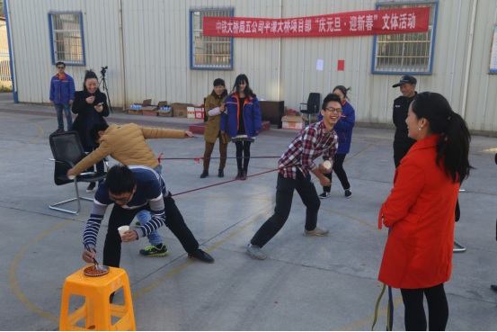 为活跃员工文娱生活,项目部忙里抽闲,开展了“庆元旦·迎新年”文娱活动。项目部篮球场热闹非凡、人声鼎沸,随着主持人一声令下,定点投篮比赛拉开了本次活动的序幕,男女老少职工都积极参与了游戏。接着,弹力绳大作战将活动推向高潮,双人争夺变成三人争夺,你进我退,引得在场员工哈哈大笑。为了通过身体接触打破人与人之间的隔膜、培养个人的自信心,本次活动特别设置了“信任背摔”环节,地下放有软床垫,一人站在高台,其他八人站在台下,两两双手交叉握住,高台的人保持双脚伸直往下倒,底下的人用“手网”接住。