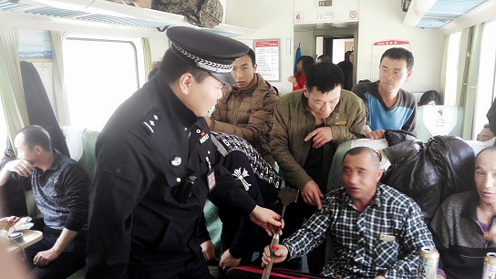 由于正值学生流、务工返乡流重叠的客流高峰,车厢内明显超员,过道几乎站满了人,乘警进步强化对旅客“防火、防盗、防骗”的安全宣传。将一些列车上常见的安全常识、盗窃手法、行骗伎俩及旅客防范意识差易导致财物受损的案例面对面地向“冰雕工”详细讲解,增强其防范意识。同时,乘警临时客串“小偷与旅客”,现场演示好几种小偷惯用的偷窃手法,以此提醒“冰雕工”如何做好防范,让小偷“无机可趁”,带着自己的辛苦钱平安回家、幸福过年。