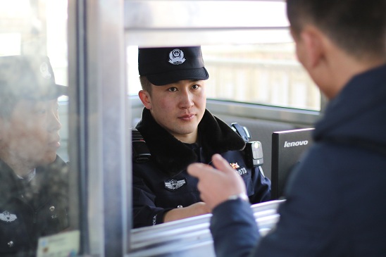苗泊钧在查缉岗检查旅客票证人是否合一 汤彦冬摄