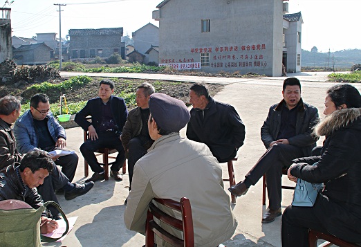 图为县史志办主任刘治平(左二)在勤坡村开展“党的好声音”宣讲
