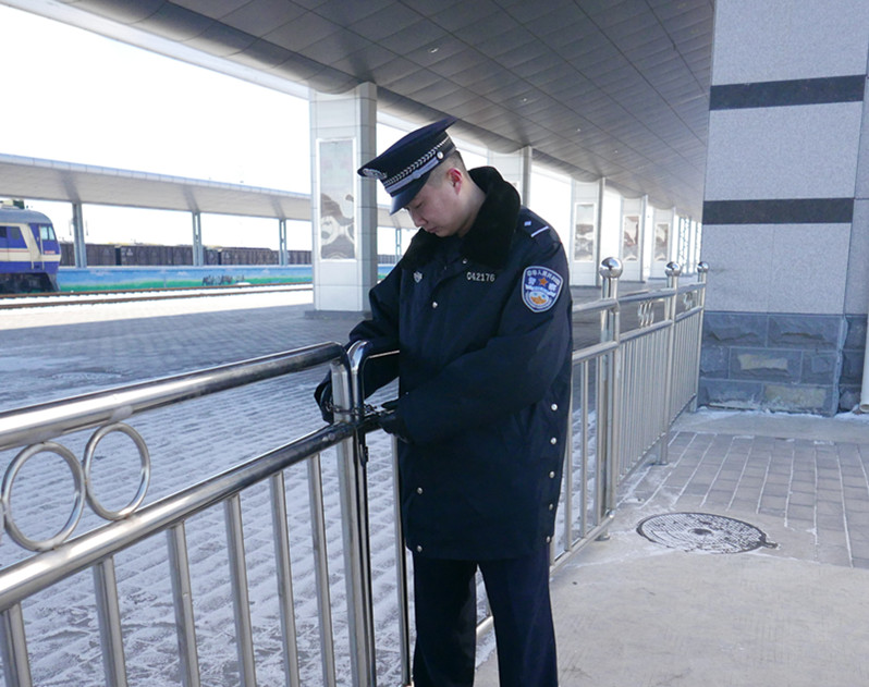 期间,派出所民警对站区各通道、通勤口、通勤门的锁闭和封闭情况进行了检查,对站区两侧线路的封闭、网围栏防护情况以及周边路外单位通往站区通勤门的使用、管理及锁闭情况进行了检查,确保站区做到全封闭,严防各类闲杂、嫌可疑人员进入站区。同时派出所民警按照“谁主管、谁使用、谁负责”的原则与各单位负责人进行了沟通,要求各单位要进一步加强对本单位通道门、通勤口的管理、使用和锁闭,进一步做好本单位职工的安全教育,坚决杜绝站区危及行车安全事件的发生,确保站车的安全稳定。