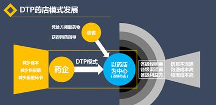 官方资料显示,DTP(Direct to Patient)即制药企业将药品直接授权给药房做经销代理,省却代理商,患者在拿到医院处方后就可以在药房买到药物并获得专业的用药指导。该业务模式依赖药房与制药企业资源的深度绑定,其产品主要以专业药为主。