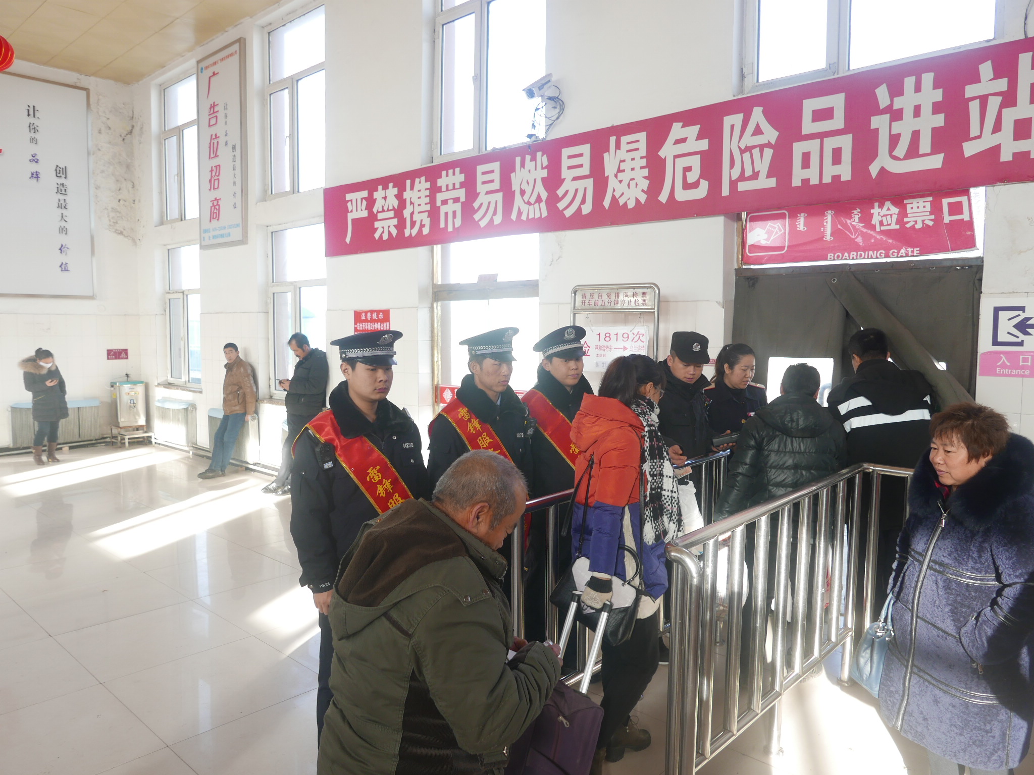 当日为春运首日,民警来到候车室为广大出行旅客讲解了真伪火车票识别、实名制售票、春运出行安全六提示、爱路护路宣传等安全出行的便民知识。同时,开鲁所春运期间在候车室、站前广场等部位增派维序警力,设置便民服务台,成立雷锋小分队,对有困难的旅客,做到提前发现、及时提醒、有序引导,营造良好的便民出行环境,确保旅客春运出行安全。