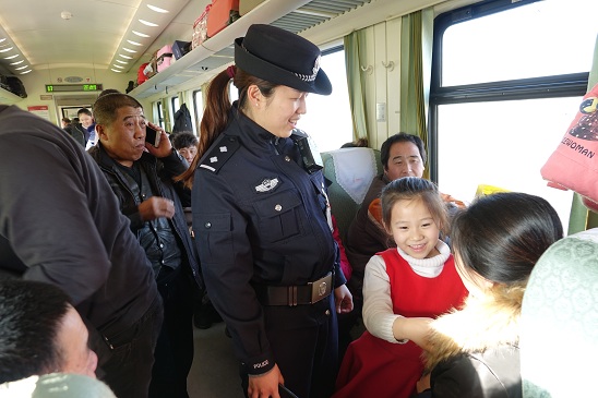 入夜,女乘警都要进入车厢轻轻提醒旅客看管好自己的行李物品;白天,她们手持小喇叭到各个车厢,以亲切流畅的语言,生动活泼的形式进行安全宣传。女乘警每个班巡视往返车厢10余次,一天下来要步行10余公里。乘客在给警组的表扬信中写道:“文明执勤服务好,治安防范旅客赞,警卫工作秩序好,行程万里保平安。”