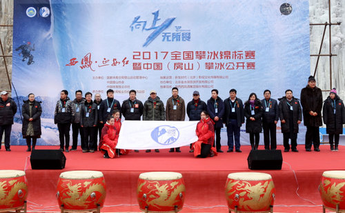 中华志愿者杂志(记者:许顺喜)1月16日上午10时许,由国家体育总局登山运动管理中心、中国登山协会、中国体育报业总社主办,新生时代(北京)影视文化传媒有限公司独家运营推广的“西凤•延安红2017全国攀冰锦标赛暨中国(房山)攀冰公开赛”在北京房山区霞云岭金水湖景区激情开赛。