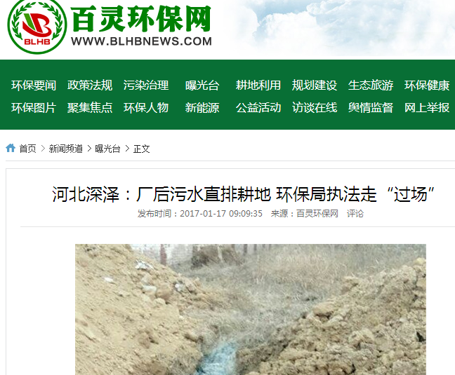 18时许,深泽县环保局片区负责人杜(音)某和另一工作人员,向本网人员回复,称该厂没有生产,排污水的来源正在调查,可能是附近一住宅区排放的;本网人员问道,这污水是从威望化工厂后墙根下流出来的呢?其表示,有一条排水沟贯穿厂区。
