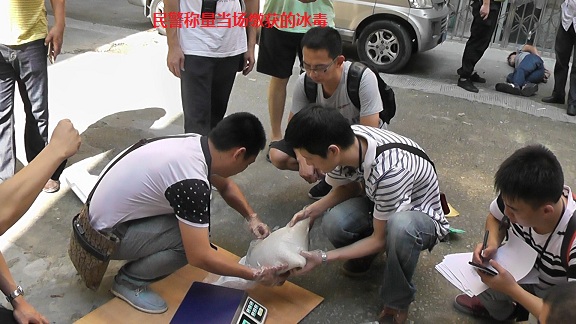 行动中,李某东的妻子陈某英(女,50岁,内蒙古人)在与魏某(男,26岁,内蒙古人)进行毒品交易后当场被民警抓获。而当晚另一小组的民警跟踪犯罪嫌疑人魏某时,看到其跑到马路对面将一个可疑的白色塑料袋交给远处出租车的乘客,便立即跟踪出租车并制定了周密的抓捕方案。可狡猾的嫌疑人并没有按照民警预想的路线行进,民警一度担心是否已经暴露。在出租车准备半路停车的时候,民警毫不犹豫地冲下了尚未停稳的汽车,将犯罪嫌疑人王某丽(女,37岁,内蒙古包头市人)成功抓获,当场缴获冰毒54.14克。