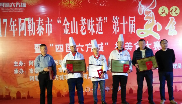清风网讯:(通讯员 玛依拉)1月17日,由阿勒泰市人力资源和社会保障局主办的,市委宣传部、市旅游局、“四国六方城”协会及各街道、乡(镇)共同配合下举办的2017年阿勒泰市第十四届冰雪风情游第十届美食节暨“四国六方城”杯美食大赛”活动,在南区四国六方城A5栋首层隆重举行。 本届“美食大赛”分为地方特色菜肴、地方名小吃和点心两大类,菜肴组和小吃组各评出了一等奖一名:奖金;四国六方购电子代金券3000元,二等奖两名:奖金;四国六方购电子代金券2000元,三等奖三名:奖金;四国六方购电子代金券1000元,优秀奖五名:奖金;四国六方购电子代金券600元。参赛人员及获奖人员还获得了荣誉证书及相关国家职业资格证书