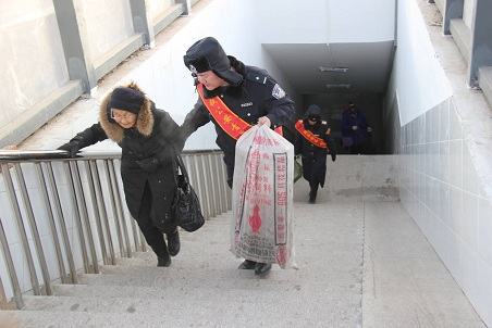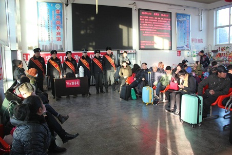 期间,民警在候车室设立爱心服务岗,帮助旅客注册铁路网上购票软件,耐心回答旅客的疑问,无偿为候车旅客提供热水、应急药品;以宣传单、条幅等形式向大家宣传春运安全基本知识,禁止烟花爆竹、高浓度酒精等易燃易爆物品出现在火车站及其附近;登上站台接发列车,积极帮助有困难的旅客,提、拉、推、牵,伸出双手欢迎旅客回家;深入沿线排查安全隐患,及时修补破损护网,堵塞漏洞、加高加固,杜绝翻越护网进入铁路的现象发生。平安春运、幸福春节是我们共同的心愿!