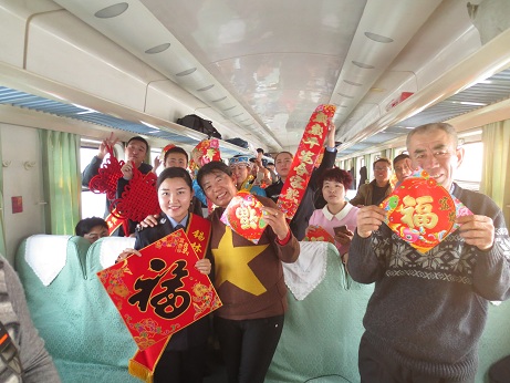民警们带来的独唱、三句半、舞蹈表演以及大合唱等节目,尽情倾诉锡林铁警真诚为民服务的心声,赢得了旅客群众的阵阵掌声,在车站、列车车厢旅客与民警积极互动,登台演出。一曲激情高昂的《蓝色蒙古高》拉开演出的序幕;民警诙谐幽默的三句半,使旅客在笑声中了解到春运安全乘车知识;一曲《回家吃饭》勾起了旅客群众对家人的思念;舞蹈《永远的那达慕》、独唱《遥远的妈妈》、旅客小朋友演唱的《天之大》等节目更是将活动推向高潮。现场一曲曲动听的歌曲、朗朗上口的安全防范知识、一句句暖心的话语与旅客的欢歌笑语交织在一起,在旅途中构筑起一副别样风景。