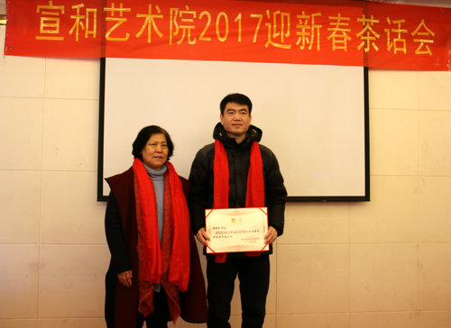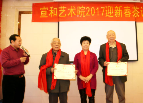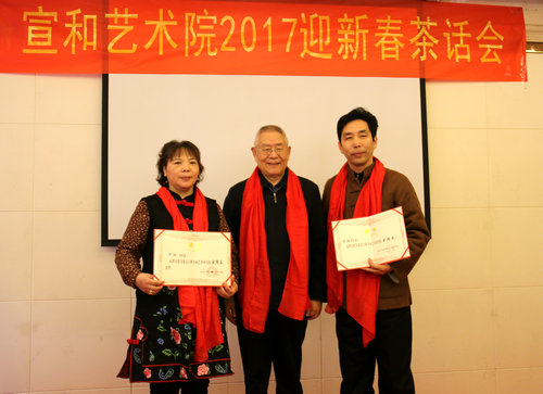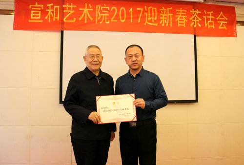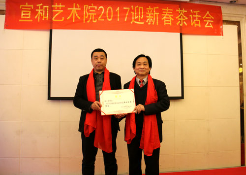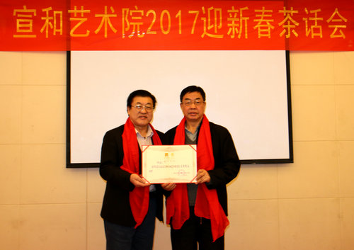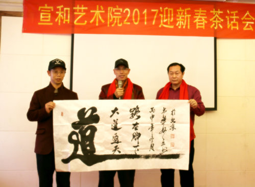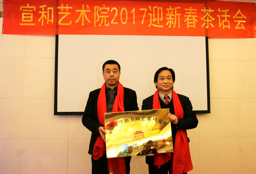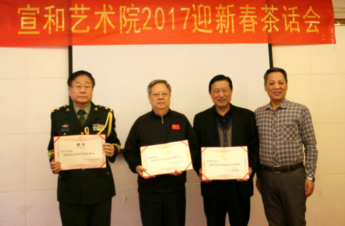 环球文化艺术网(记者:冯永军 摄影:赵佳运)猴年新风辞旧岁,雄鸡正气报新春。2017年1月19日,由北京宣和书画艺术研究院、环球文化艺术网、中国商务新闻网书画频道、中国周易新闻网、宣和网联合主办;飞驰环球(北京)文化传播有限公司承办;久诚玖实业有限公司协办的“北京宣和书画艺术院2017迎新春茶话会暨廊坊分院授牌仪式”在京隆重举行。