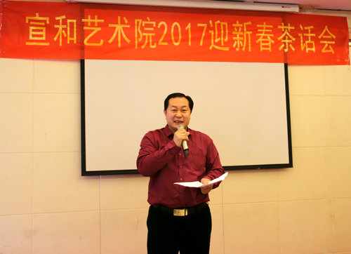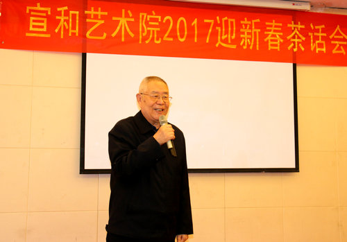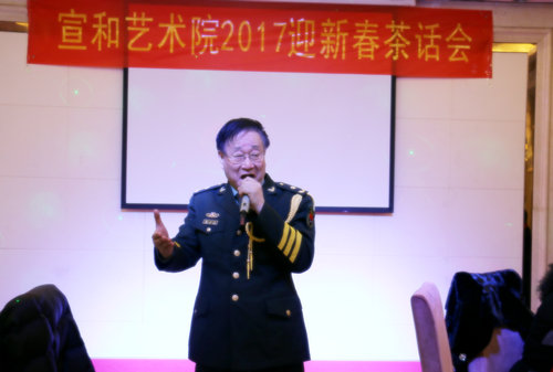 本次迎新春茶话会由中华志愿者杂志副主编、北京宣和书画艺术研究院常务副院长许顺喜主持;十届全国政协外事委员会副主任、原国务院新闻办公室副主任、北京宣和书画艺术研究院名誉院长杨正泉、中宣部党委委员、老干部局书记薛启亮等领导发表了热情洋溢的讲话。