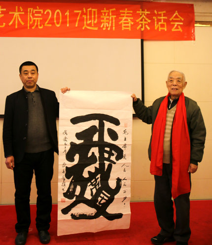 茶话会期间,海军航空兵装备部原政委祁荣祥将军、原总参防化研究院政治委员孙昌军将军、著名禅意书法家书禅妙文法师专程为本次活动赠送书了法作品以示祝贺;著名军旅男高音歌唱家张宝生、著名歌唱家王炫凝、全国十佳孝贤歌手成昊才让、青年歌唱家蔺振华、民族青年歌手王依依分别演唱歌曲、戏剧为整个活动增添了浓浓的节日气氛,也为2017新年到来增添了别样的喜庆色彩。