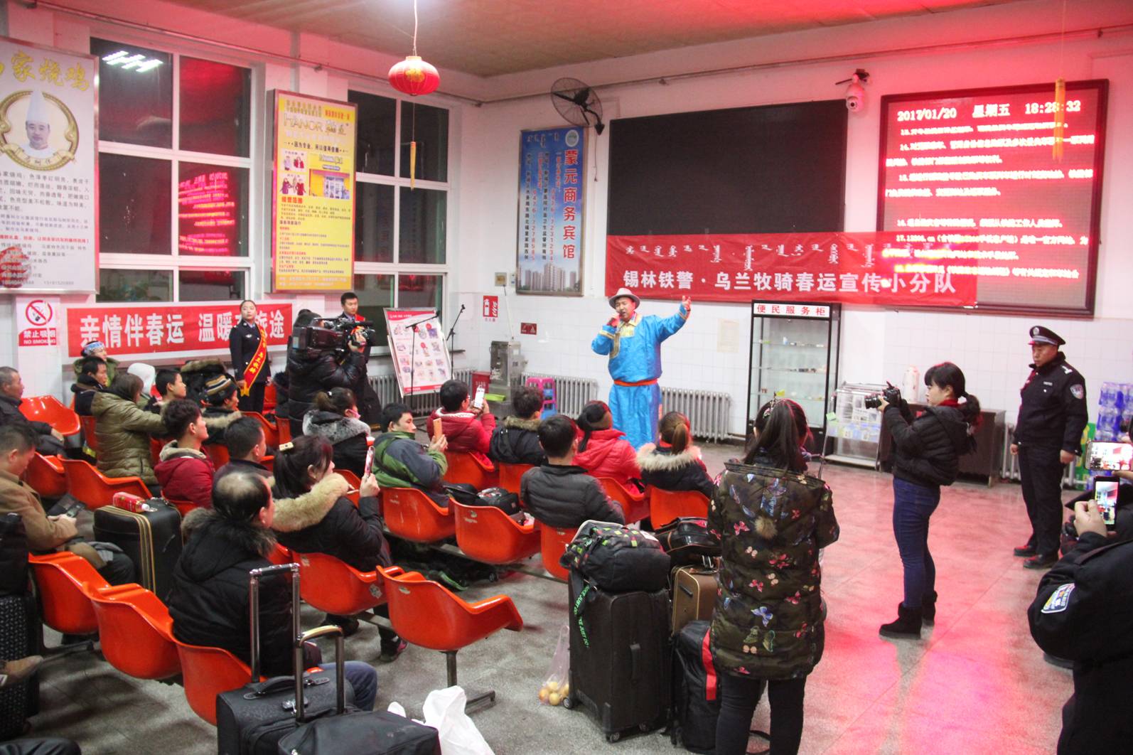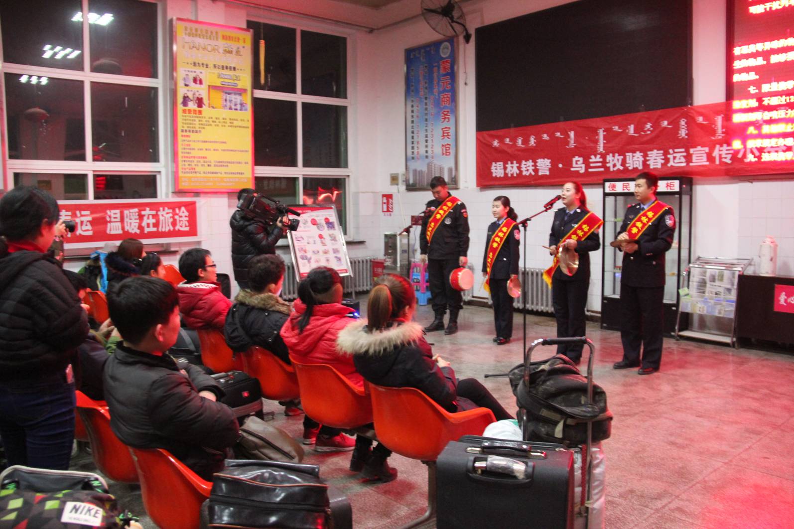 清风网讯:(通讯员 宋宇宁)1月20日晚,中国传统的小年夜,内蒙古赤峰市阿鲁科尔沁旗查布嘎站候车室内热闹非凡。“锡林铁警·乌兰牧骑”春运宣传小分队用蒙语歌曲、吉他弹唱、三句半、蒙古族舞蹈、合唱等形式,为旅客们倾情奉献了一场别开生面的文艺演出。演出结束后,查布嘎车站派出所民警为旅客们讲解了安全出行的相关知识并为大家赠送福字、春联等,献上了美好的祝福。这个小站不一样的小年,获得了广大旅客的一致赞扬。