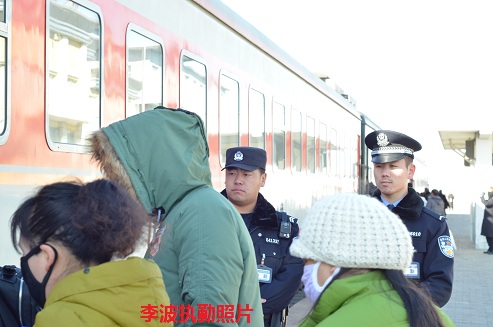 “别看咱们前旗站小,客流量还真不少。”李波这样告诉我们,“进入春运以来,每天客流能达到2000(人次)。”站小人多,这使得执勤民警的工作更为繁重。维持秩序、身份证比对、安检查危,李波像一位老民警一样处理得井然有序。每天中午12点,2702次列车准点到站,李波总是坚持把所有的旅客安全送上车才匆匆回所里吃口饭。还没等放下筷子,候车室里就又挤满了乘坐6852次列车的旅客,李波来不及喝口水就又跑去候车室了……“都适应了,之前十一国庆节的时候就经历过如此多客流。”李波说,“那时候第一次见这种架势,简直都懵了,一时慌乱了手脚,傻傻不知道该干什么,幸亏有师傅在旁边指导我。”