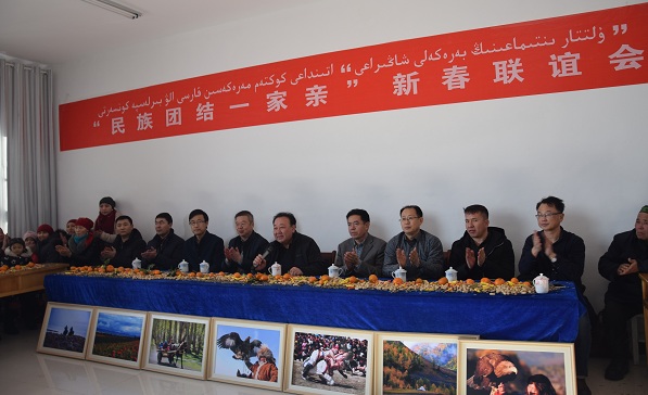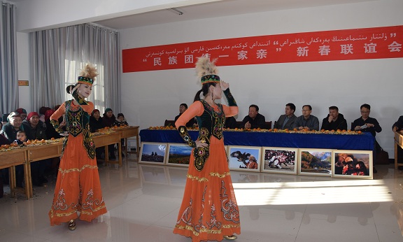 备份栏目清风网讯:(通讯员 阿依努尔.朱马别克)1月20日,地委宣传部、地区信访局、地区文联三家单位联合举办“民族团结一家亲”迎新春联谊会,干部职工同结对的各族群众亲戚上百余人欢聚一堂,共同观看大家自编自导自演的文艺节目。大家围坐在一起聊家常,一边欣赏节目,一边话团结、叙友情,共同感受各民族和睦相处、团结互助的深厚情谊。