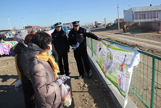 春节将至,锡林浩特铁路公安处查布嘎车站派出所为创建“平安春运、有序春运、温馨春运”出行环境,组织民警深入辖区铁路沿线两侧村庄牧户开展爱路护路宣传工作。