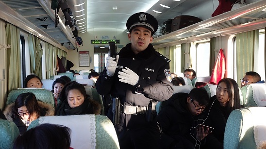 2017年1月23日,Z336次列车锡林浩特铁路公安处乘警向广大旅客讲授防盗知识,并做现场模拟演示。
