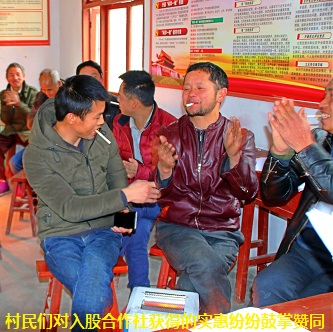 入股的村民分别以5万、0.4万、0.17万元不等的数目发红包。看着股民们从合作社里领到一叠叠厚厚的股金,一些贫困户心里也被挠得痒痒的,使当天就有16户村民前来报名入股。看着村民变股民的积极性不断提高,潘志浩表示,下一步自己在下坝村的高坡上把养殖场修建起来后,计划将能繁母猪的饲养量发展到60头以上,不但要让更多的村民入股进来,而且更要带动贫困户们富裕起来。