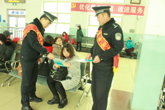 清风网讯:(郭灵 于东莹)为进一步打造“平安、有序、温馨”的春运氛围,近日,呼和浩特铁路公安处土贵乌拉火车站派出所深入辖区车站内部单位开展消防安全检查,同时深入候车室开展“手拉手共筑防火墙,心连心共抵回家路”消防知识宣传活动。