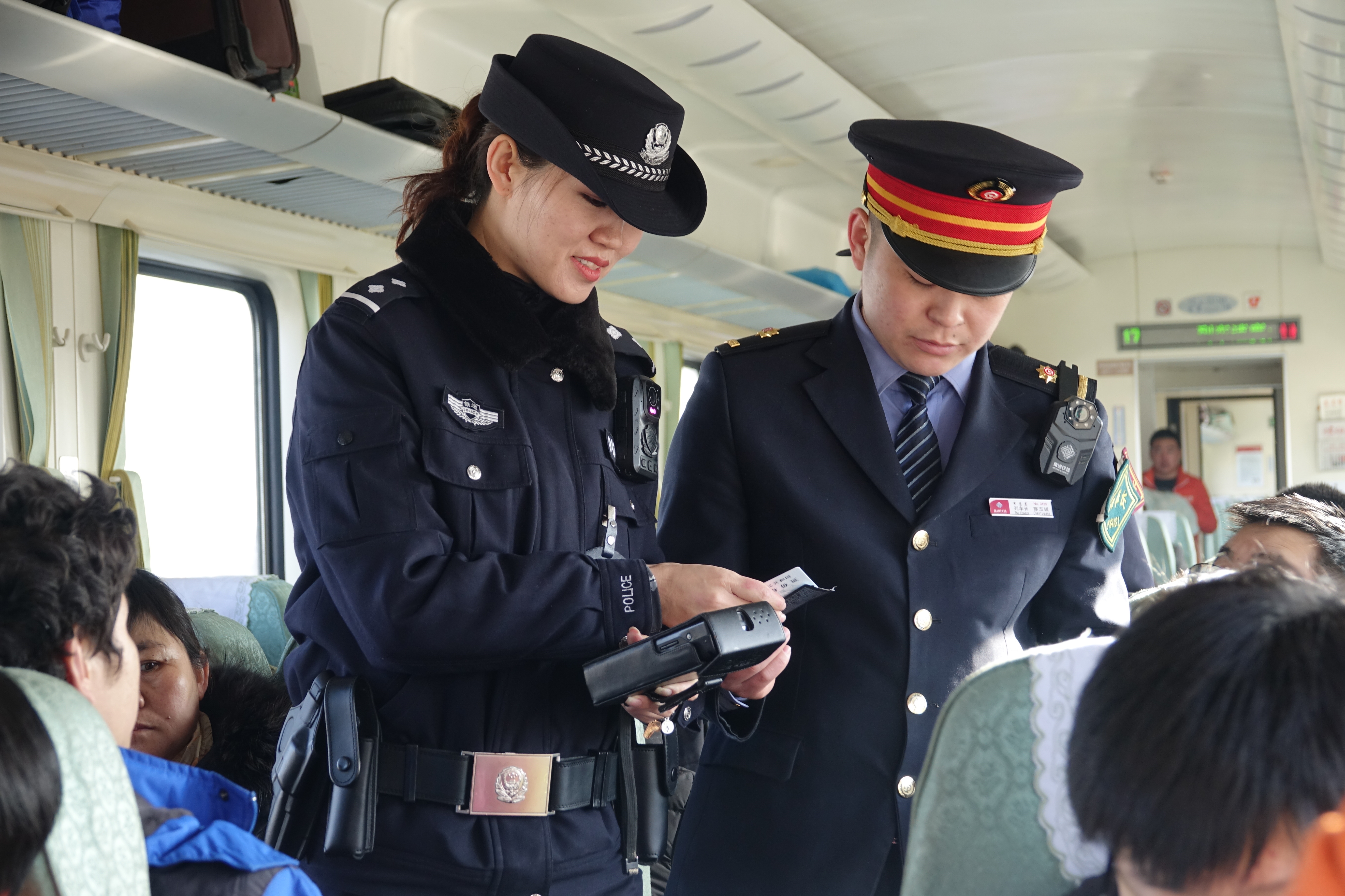 郭荣已经从警快10年了,经验丰富的她知道春运客流大幅飙升,随之而来的就是安全隐患。在值乘过程中,她格外忙碌,不定期地在全车进行巡视,威慑犯罪分子。从始发站到终到站包括中间的中停站,每当旅客成分发生变化的时候,都必须要进行车厢巡视,了解旅客变化及车厢治安情况。40分钟左右巡视一次,16节车厢走完,基本上下一站就要到了,又要开始下一次的巡视。全程基本上都要在火车上走动,根本停不下脚,每天都会走20000多步,袜子不知道磨破多少双。可她却总说:“我们辛苦点没关系,我们多巡视一次就能多起到防范作用,旅客看见警察出现心里会踏实很多,旅客安全出行比什么都重要。”