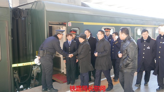 在站台上,张局长与乘警、列车员一一握手并亲切的关怀慰问,将慰问品送到大家手中,感谢春节值守在一线的全体工作人员,大家激动地心情溢于言表,冰轨虽寒,心田却暖;随后,张局长与陈总经理又到餐车对节日期间伙食配备情况进行了解,并要求节日期间一定要保证车上工作人员以及旅客吃饱吃好,营造良好的节日氛围;随同的有关领导对列车设备使用情况进行了询问,并强调春节期间做好春运安保工作,三乘一体,齐心协力做好春节期间各项安全工作,确保列车上的绝对安全。大家纷纷表示会全力以赴站好岗、值好乘,切实营造“平安、有序、温馨”春运。