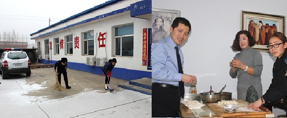 家属们把满满的心意融注在一餐年夜饭中,水池里青翠的蔬菜,焖锅里沸腾的肉汤,圆盘里盛装喜气洋洋的饺子……厨房里一片热火朝天忙碌的景象,从另一个角度表达了她们温情与理解,同时也润泽了警察钢铁一般的心。