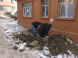 2017年1月27日,农历大年三十。早上7时许,由于天气原因,造成金山路102号楼供水主管爆裂,导致整栋楼60户居民吃水受影响。得知情况后,包片干部木拉提不顾春节期间休息,及时与自来水公司、万邦家政公司联系,组织人员抢修,由于天气寒冷地面冻层深,工作人员施工非常困难,即使这样经过2天2夜施工人员全力抢修,于第三天中午修好恢复正常。