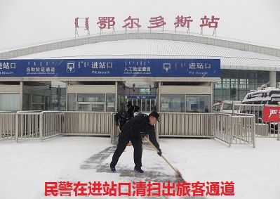 鄂尔多斯车站派出所民警分别在进出站口、候车室、售票厅等重点部位及时增派警力,组织旅客有序进出站,加强安检查危;并采取有效措施预防雪天旅客滑倒摔伤事件的发生。与此同时,派出所积极采取有力措施,组织民警加强对线路的巡逻巡视工作,强化重点区段和重点时段的巡查工作,逐段逐米的对线路防护、行车设备设施等进行检查,做到不留死角、死面,全方位、全天候加强雪天线路的治安防控,确保铁路大动脉安全畅通。
