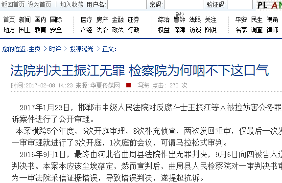 法院判决王振江无罪 检察院为何咽不下这口气