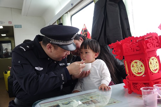 “车厢里很温馨,能感受浓浓的‘人情味’,感受到铁路公安对我们旅客的关怀。”前往长春的旅客刘大姐的话,说出了很多旅客的心声;“乘车切记不可吃别人送的食物”42岁的旅客马先生抽中了这样一个灯谜,他准备乘坐当天的火车到锡林浩特煤矿上班,“有灯谜猜,还能学到乘车安全知识,吃着甜甜的汤圆,让我感受到了浓浓的元宵节气氛,有份家的温暖。”