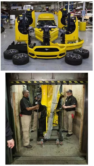 要将一辆Mustang展车送上大厦第86层的观光平台绝非易事。移动起重吊车办不到,帝国大厦的尖顶和相对狭窄的顶层平台让直升飞机运车也成为不可能的任务。因此,帝国大厦的电梯成为唯一可行的方案。但这可不是把车开到电梯里面然后直接运上去就行了。1965年,福特汽车将一辆第一代福特Mustang敞篷车送上了当时还是世界第一高建筑的帝国大厦观光台。为了送上去,福特工程师便完成了这一创举,他们经过反复的测量和计算,将刚问世的敞篷版福特Mustang量身切割成三段,拆下挡风玻璃,通过帝国大厦电梯运往86层观光平台,并在楼顶再将其完美地拼合成一辆展车,然后供人参观。