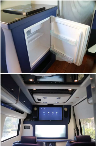 内饰细节方面:奔驰斯宾特豪华总裁版车厢内配备齐全,独立卫生间、开放式厨房、车载冰箱等为旅途中的BOSS们带来更多方便,前排按摩航空座椅更能让忙碌一天的BOSS有片刻歇息。 车型信息奔驰 Sprinter Premium Edition 斯宾特 豪华总裁版 车辆配置 限量版外观套件,电动门,桃木内饰,车载冰箱,后排超大空间豪华房车,开放式厨房,航空座椅带按摩,星空顶,氛围灯,卫星电视,大屏电视,BOSE音响,可升降电子雾化玻璃,座椅阅读灯,空气净化器,独立的卫生间。