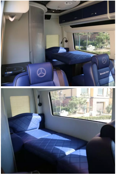 奔驰Sprinter 斯宾特商务房车作为奔驰的豪华房车,不仅内部配置豪华舒适,而且内部空间非常宽敞,重要人物在车厢内踱步思考更是不成问题,似乎也能更加彰显车主的身份与地位。 下面的全方位实拍,让我们一同去体验奔驰总裁移动办公室的舒适与奢华。