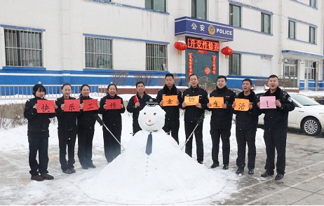 清风网讯:(通讯员 包头铁路公安处 汤彦冬 张玉祥)春运安保任务的最后一天,包头市迎来了2017年的第一场雪,为了缓解包头火车站派出所民警在春运安保期间紧张的工作压力,丰富青年民警的业余生活,大力营造积极向上、健康轻松的警营文化氛围,包头火车站派出所于2月21日组织所内青年民警开展了“快乐工作、幸福生活”团活动日。活动期间,青年民警齐聚院内,经过大家的相互配合、分工合作,成功的将一个高达150公分的雪人矗立在了派出所的大院内,宛如一位在风雪中矗立的卫士。