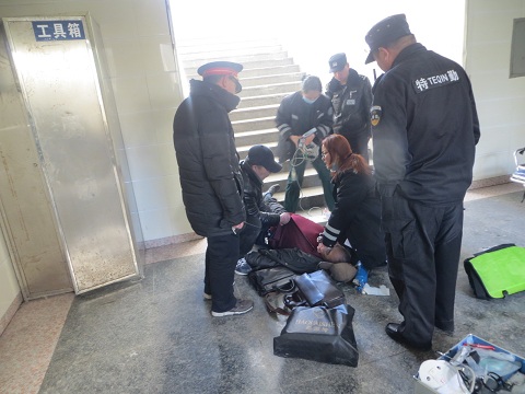 清风网讯:(通讯员 包头铁路公安处 汤彦冬)“警察快来啊,有人在地道那边晕倒了。”2月24日,由包头东开往白云鄂博的K7907次列车开始检票后,一名男性旅客气喘吁吁的跑到站台上对站内正在巡逻的包头东火车站派出所值勤队队长冯祯说道。获此情况后,冯祯立即组织民警赶赴现场。在通往三站台的地道楼梯附近,发现一个约70岁的男子表情痛苦、面上苍白,躺在地上一动不动。为了确保他的人身安全,民警果断采取措施,一边拨打了120急救电话;一边保护现场,疏散围观旅客;同时组织队员联系车站值班工作人员确保救护车以最快速度直接进入车站。不一会儿,120医护人员赶到了现场对老人进行救助,并在民警及辅警队员的帮助下将老人抬上了救护车,送往医院进行救治。