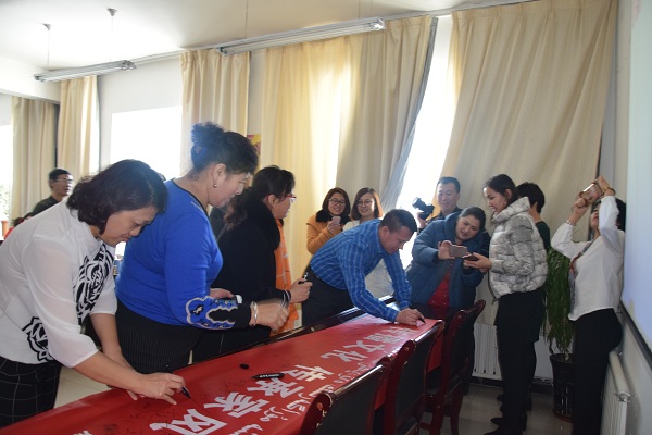 通过同唱一首歌曲、学习身边的先进人物、诵经典、学法治、送吉祥、谈感想6个环节,使先进道德理念入脑入心。同唱《各族人民相互离不开》歌曲;“道德模范”阿斯哈尔用质朴的话语,真挚的感情,为大家讲诉了他的事迹和体会,通过学习道德模范,引导大家自觉成为道德的传播者和践行者,大力弘扬正气、树好先进典型,深刻查找问题,切实转变工作作风;诵经典环节现场播放道德短片;讲法制环节,学习了十八届六中全会会议精神,为我们进一步做好工作指明了方向,提供了重要遵循;送吉祥环节,大家互赠自己准备的礼物;在谈感悟环节,每名干部结合“道德讲堂”,通过自身工作实际,畅谈在“学转促”专项活动中具体应该怎么做。