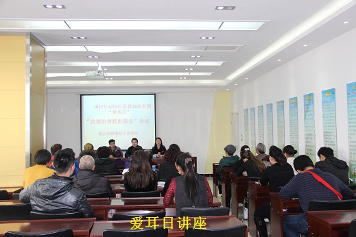 在文化路社区,地区残联康复科干部姜春以“防聋治聋,精准服务”为主题,通过PPT形式,图文并茂的向社区居民讲解了什么是听力,听力损失分级和听力残疾分级,那些是听力常见伤耳的行为,听力保健常识以及选配助听器的注意事项等内容,三十余名社区居民聆听了讲座。