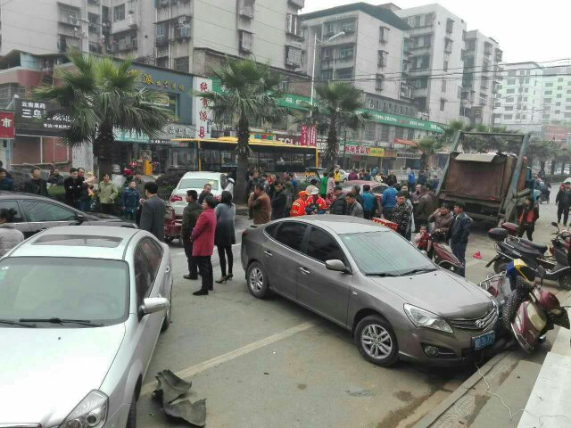 2月18日下午一点十六分左右,衡阳市雁峰区发生一起连环相撞车祸,事故造成7台车严重损毁。