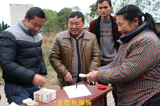 清风网讯:(通讯员 张玉良 杨玉銮)“起初,我只晓得给合作社做活路,每天得点工钱就算了,没想到,真的没想,到到头来,合作社还给我们发红包!”日前,贵州省黄平县旧州镇波洞村一扶贫户手里拿着一大叠人民币,笑嘻嘻的告诉笔者,这是黄平县通建合作社向波洞村50户精准扶贫户发红包,户均分得红利金额750元,这的的确确让贫困户享受到扶贫贷款入股无本分红的好处。