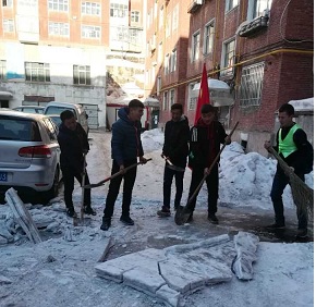 3月是学雷锋月,在3月7日金山路团总支组织辖区青年开展了学雷锋,位居民清扫小区积雪,单元门上小广告。此次活动过后辖区青年努尔兰说:“现在滑雪了路滑,能为辖区的居民朋友们清理小区冰面,我很开心。”