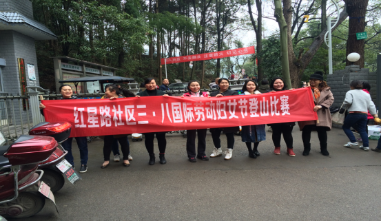 3月8日上午,红星路社区为庆祝3.8妇女节组织辖区妇女同胞们在中坡山进行登山比赛活动。