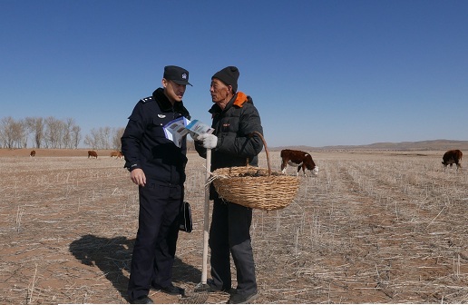 清风网讯:(范嘉鑫)为进一步提升沿线牧户爱路护路意识,确保线路治安稳定。2017年3月10日,呼铁公安局锡林浩特公安处正镶白旗车站派出所组织民警深入管内173公里-200公里处开展线路隐患排查及爱路护路宣传工作。期间,民警重点对沿线防护栅栏的防护、桥涵两侧封闭等情况进行了细致排查,对发现的2处隐患进行登记,现场整改1处,并及时通知相关单位限期整改1处。同时,向沿线群众开展爱路护路宣传活动,通过发放宣传单和宣传手册的形式,面对面向牧民普及了法律知识和铁路安全常识,要求其严禁在铁路上行走、拾捡、坐卧,严禁在铁路护网内放牧,确保铁路运输安全。