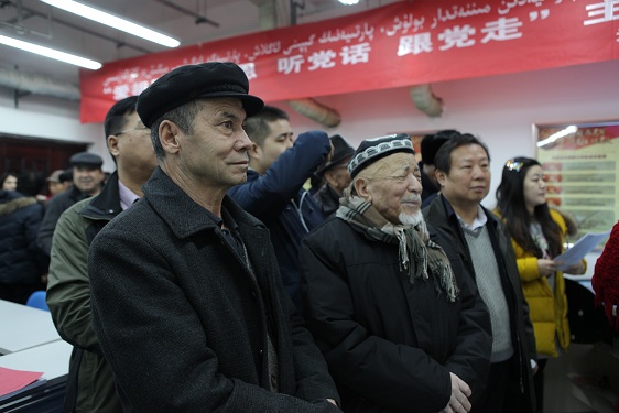 活动最后,大家一起观看学习了自治区反恐维稳誓师大会视频资料并发声亮剑,爱国宗教人士麦麦提·吐尔迪说:“‘访惠聚’工作队这次活动开展的非常好,我们宗教人士要做爱国爱教,遵纪守法的践行者,带头引导教育群众爱国爱教,为新疆的社会稳定和长治久安做出应用的贡献。”