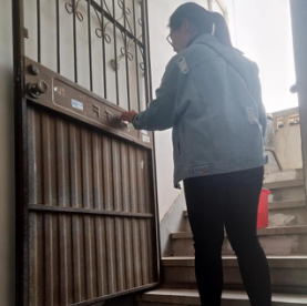 在社区负责人的安排下,志愿者们被分为四人一组,共五组,深入小区所有居民楼进行楼道牛皮癣清理工作。志愿者们分工合作,分别拿着铲刀、刷子、小水桶等各种清洁工具,对社区楼道里乱贴的牛皮癣、小广告进行了清理。