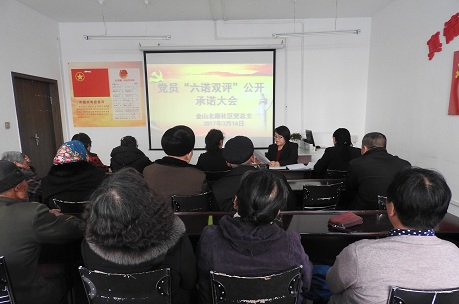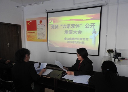 清风网讯:(通信员 姜杰)2017年3月14日下午,金山北路社区党总支召开党员“六诺双评”党员公开承诺大会,50余名党员参加了会议。