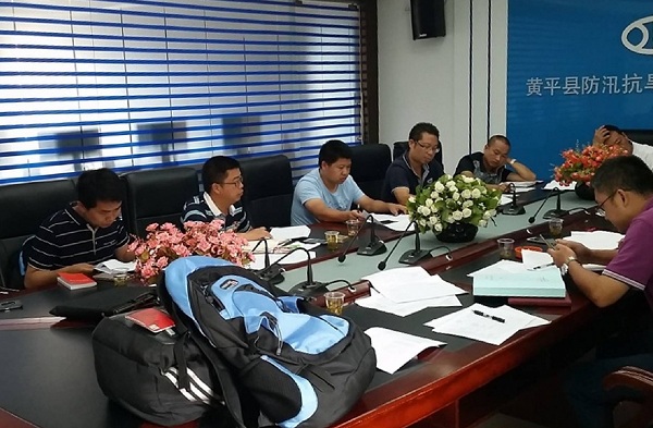 图为省水利厅驻黄第一书记与黄平县水利局领导在研究项目帮扶方案