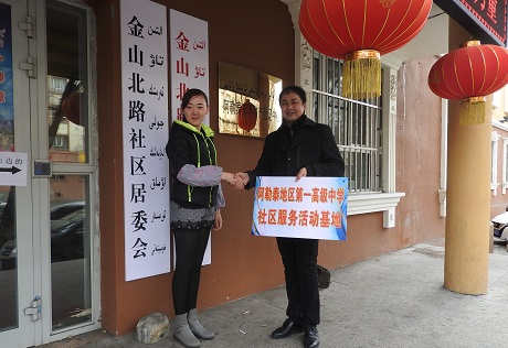 阿勒泰地区第一高级中学团委与金山北路社区开展“社区服务活动基地”授牌仪式活动