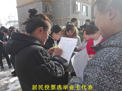 该小区业主委员会成立大会严格按照民主选举、公平公开的原则进行。经过发放选票、民主选举、公开计票、全程监票、签订责任书等5个环节,共选举出业主委员会代表5人,楼栋长4人、每栋楼选举产生楼栋自治委员会委员各两名,共计17人的小区业主自治组织。